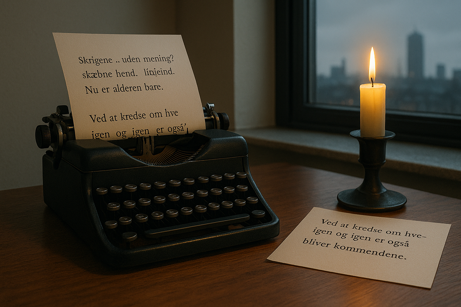 I City Slang optræder byen som et akustisk rum. Linjerne bevæger sig i korte stød, næsten som trommeslag. Det er ikke blot billeder af gader; det er måden, lyd og lys kaster om sig på. En ultrakort sætning som “lyset over bordet” peger på Thomsens metode: et konkret punkt, der suges op af rytmen og begynder at vibrere. Læst højt får teksten en næsten musikalsk drivkraft—pauserne arbejder.